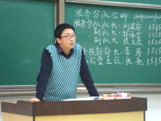 团委副书记宫一民,青协主席宋展及08、09级全体分队成员参加了本次例会,例会由服务分队队长刘建安主持。