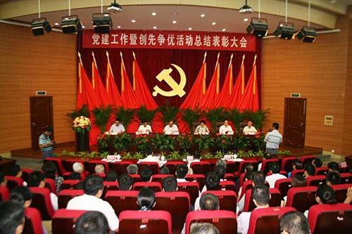 6月29日下午,学校在文昌校区网络大讲堂举行党建工作暨创先争优活动总结表彰大会,纪念中国共产党成立91周年,并对2010-2012年度党建工作和创先争优活动中涌现出来的先进基层党组织和优秀共产党员以及2011-2012学年度学生党建工作进行表彰。大会由校党委副书记、纪委书记张爱淑主持。