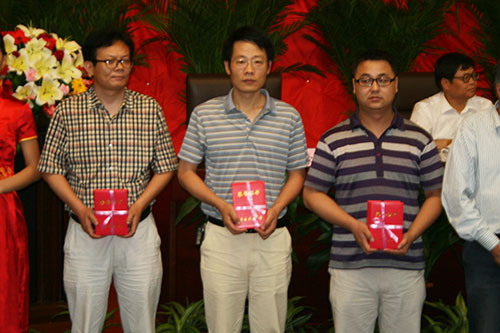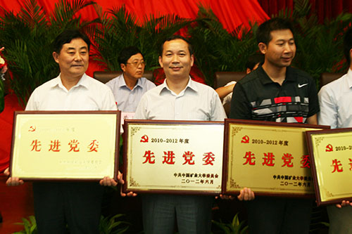 院党委书记章毛平(左二)领取“2010-2012年度先进党委”奖牌