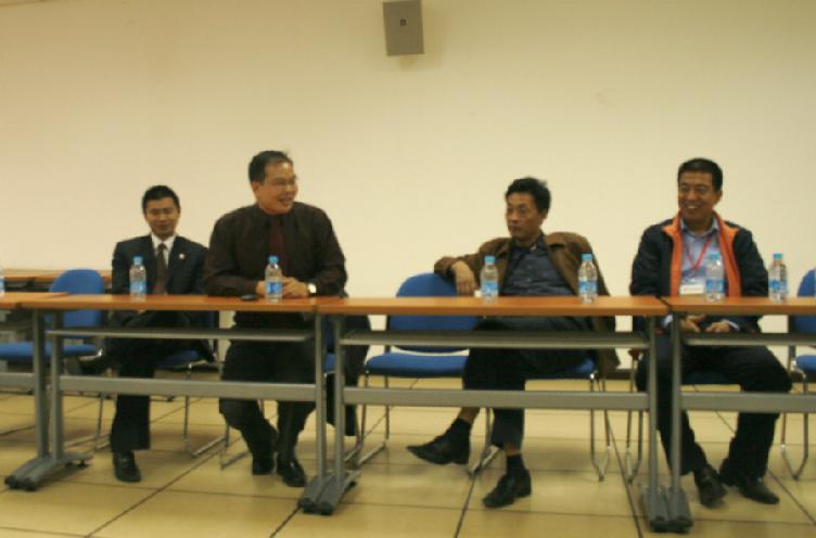 校友交流会在图书馆试听室举行。院党委书记章毛平、院长王德明、院党委副书记李金明、科研副院长林柏泉、教学副院长李增华以及部分校友参加了交流会,章书记主持交流会。