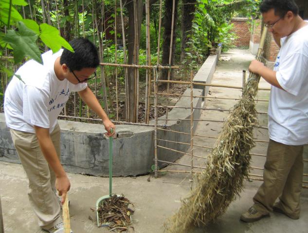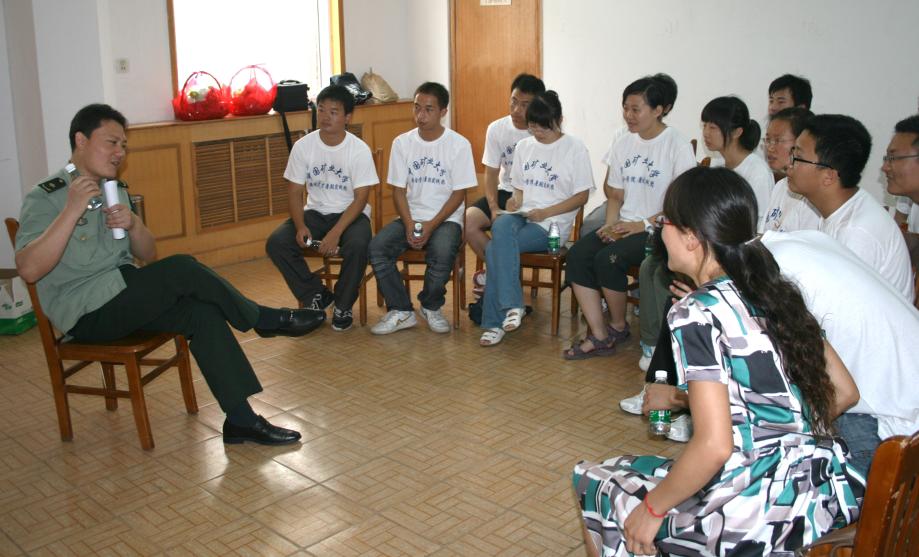 一进干休所的院子,同学们就积极主动地拿起附近的扫帚簸箕,清理院子里的枯枝败叶、果皮纸屑。随后,在干休所老干部活动室,干休所工作人员向同学们介绍了徐州军分区第一干休所的情况。从谈话中同学们得知,干休所于1965年7月建立,共有老干部100户,101人次,其中红军时期8人,抗战时期89人,解放时期3人,都是战争中光荣立功的英雄们。如今还留有老干部31名,最小的81岁,平均年龄83岁。该干休所多次被评为军区级别的先进干休所,其中的老干部多次被评为先进老干部。