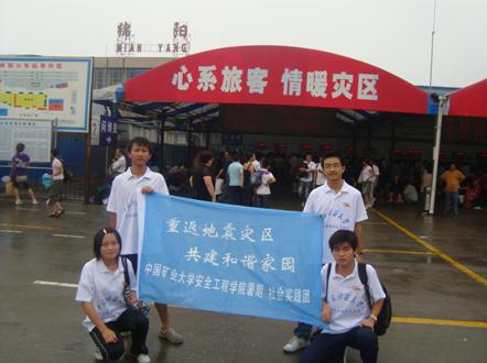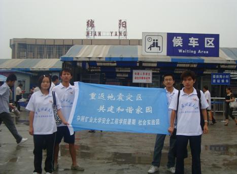 “重返地震灾区,共建和谐家园”暑期实践团一行经过20多个小时的车程,终于抵达实践目的地——四川省绵阳市,开始了在这里“支援灾区重建、献礼百年矿大”的暑期社会实践活动。