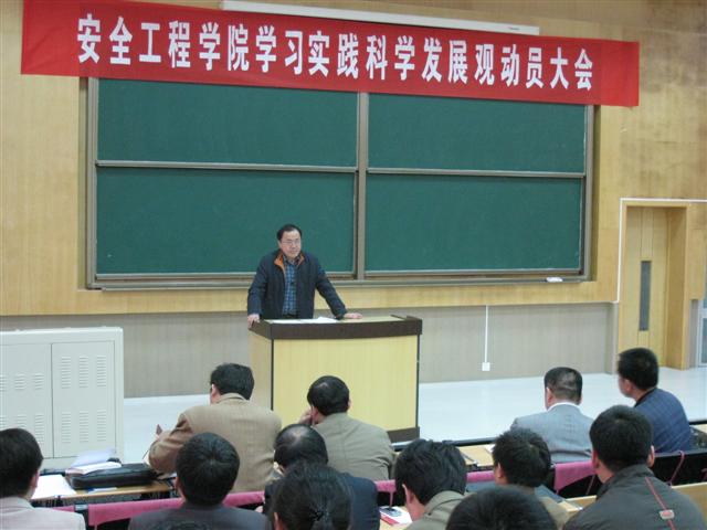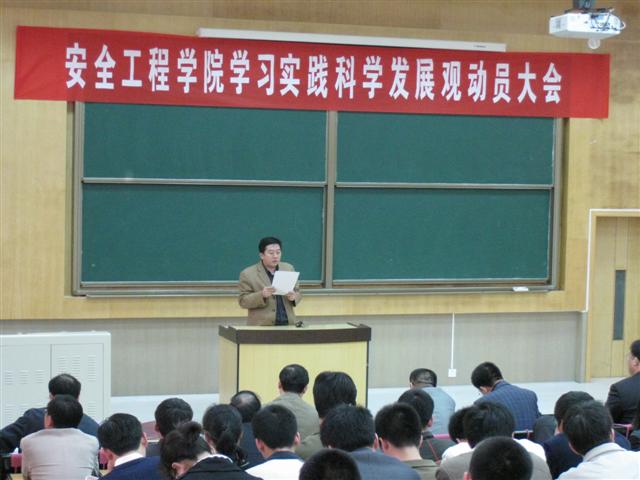 在教4楼C301召开学习实践科学发展观动员大会。学院党政领导和瓦斯治理国家工程中心正副主任、学院和瓦斯治理国家工程中心全体党员、全院本科、研究生党员参加了动员会,大会还邀请了所有非党员教授出席,院长王德明教授主持动员会。