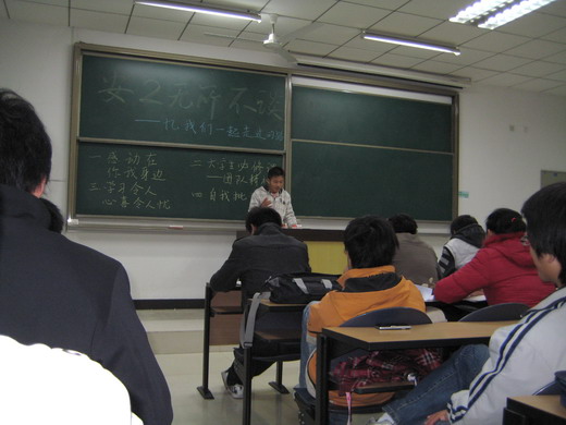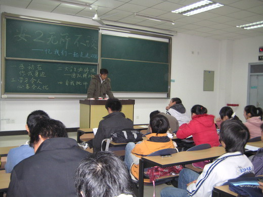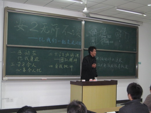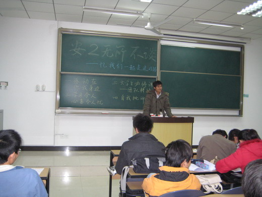 安全08-2班的全体同学聚集在教二B501召开“安二无所不能——忆我们一起走过的路”主题班会,班会分为“感动在你我身边”、“大学生必修课——团队精神”、“学习令人欣喜令人忧”以及“自我批评”四个部分。