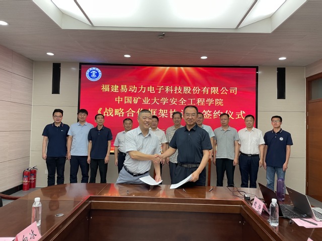 与福建易动力电子科技股份有限公司在矿业科学中心A412举行战略合作框架协议签约仪式。龙岩市委军民融合办副主任龚泽祥、龙岩市经济开发区管委会副主任温汉荣、龙岩市经济开发区管委会科技局局长陈盛湖、福建易动力电子科技股份有限公司董事长陈晓济一行,安全学院党委书记王思华、院长王恩元、副院长仲晓星、林柏泉教授、其他教师代表出席签约仪式并进行会谈。
