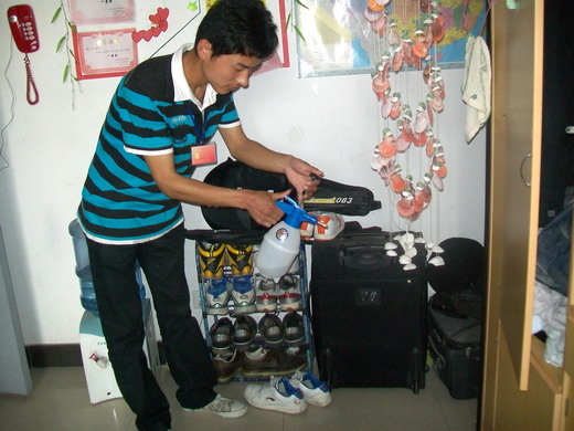 党员工作站的同学们为了大家的身体健康和人身安全,深入每个宿舍进行卫生消毒和检查安全隐患。