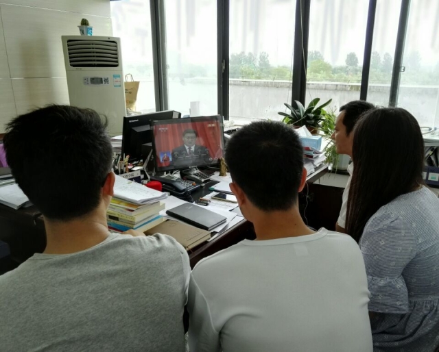 党委组织党委中心组成员在矿业科学中心A412会议室、A300办公室与梅苑三号楼党站,通过网络直播集中收看收听了本次大会开幕盛况和习总书记的重要发言。与会人员除了学院党政领导外,还有院机关支部全体同志以及部分教师、学生党员代表。