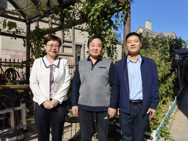 副院长郭梅香、工会主席戚绪尧与张人伟老师合影