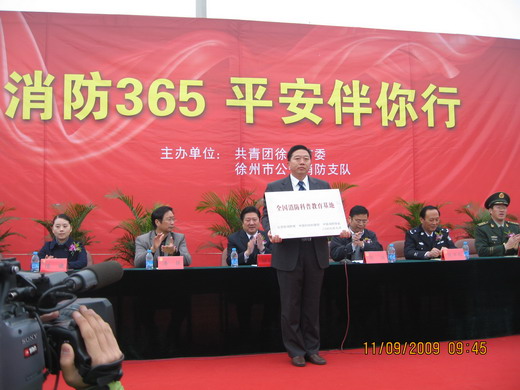 学生为主体的校消防志愿者大队被共青团徐州市委和徐州市公安消防支队授予“特色消防志愿者服务队”,校保卫处副处长杜志荣出席授牌仪式。
