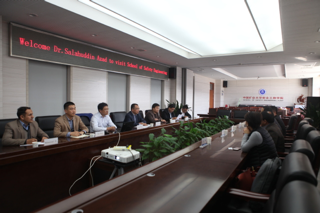 院长王恩元在矿业科学中心A412会议室与来宾进行了会谈。他对Salahuddin Azad一行的到来表示欢迎,认为中巴两国有着长期的传统友好关系,海角社区