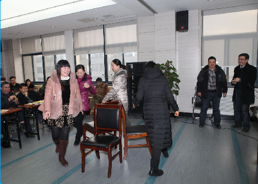 在联欢会开始之前,院工会主席李忠辉代表工会向全体教职工致以新春的祝福,对一年来辛勤工作在学院教学、科研、管理、技术服务等各方面的教职工表示了感谢。联欢会设计了互动游戏环节及抽奖环节,互动游戏集趣味性及运动性于一体,包括:抢凳子、Dancing copy、横劈叉等项目,各活动采用小组比赛形式,院领导与教职工均积极参与,在欢乐中共同完成了互动游戏,通过这些互动游戏使老师们增进了友谊和了解,增加了乐趣,放松了身心。在游戏间隙安排的抽奖活动虽然只是给教职工准备了一些并不昂贵的礼品,但热烈的过程将联欢会的气氛推向了一个又一个高潮。
