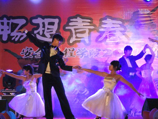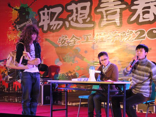 晚上7点,迎新晚会在武术协会挥舞的彩旗中正式拉开帷幕,精彩的武术表演为同学们展现了中华武术的经典与传承。由10级同学为大家带来的《爱的华尔兹》为同学们呈现出浪漫唯美的画面。08级校园十佳歌手熊超为大家带来一曲《流沙》,动态的歌声赢得了在场观众的阵阵欢呼与掌声。辩论赛“唇枪舌剑”中辩论双方围绕“安全学院男生还是女生更痛苦”展开了激烈的辩论,几位辩手幽默风趣,肢体表演夸张诙谐,引得台下观众捧腹大笑,将晚会推向高潮。郭峰、丁佩、刘明明等同学带来的街舞表演让观众们看到了海角社区