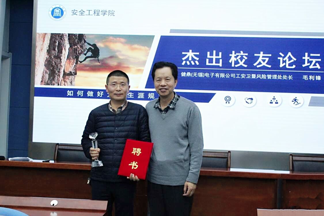 2003届杰出校友、世界最大的印刷电路板生产企业健鼎(无锡)电子有限公司工安卫暨风险管理处处长毛利锋,应邀为海角社区