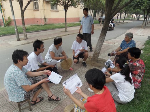 7月16日下午3点,“碧海蓝天”推进环保活动主题暑期社会实践团队走进沛县大屯腾飞新村,就低碳知识进行问卷调查并且对居民宣传“低碳生活”以及生活中的“低碳环保措施”小知识。