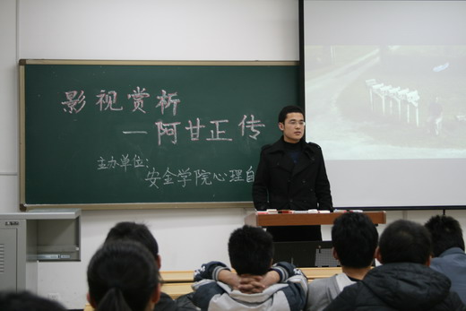 同学们在一起欣赏美国经典励志电影《阿甘正传》的两个小时中,深深地被这位平民英雄的传奇人生所吸引,那股贯穿于阿甘一生的执着精神也同时震撼了在场的每一位同学。电影放映结束后,心理自助中心的邹媛同学从电影的艺术价值和励志精神方面进行点评。随后,心理自助中心还特意为到场的同学准备了有关这部电影的有奖竞答,此次电影赏析活动在愉悦的氛围中结束。
