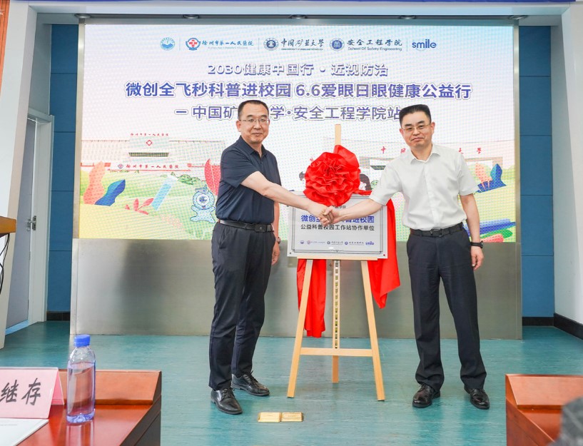 随后,王恩元书记和丁继存书记共同为科普服务站揭牌,希望双方以此为平台,更好地践行近视防治公益理念,将近视防治及眼健康科普惠及师生及社会大众。
