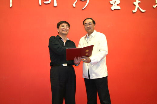 聘任仪式上,校长葛世荣为施卫祖副司长教授颁发聘书。