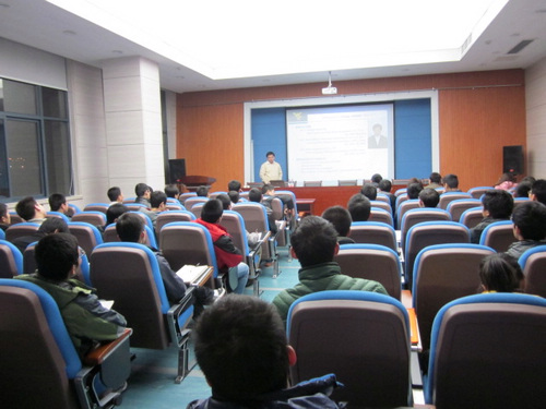 程老师全程用英文PPT进行讲解。讲座共分为四大部分:“程老师的个人研究成果”、“美国矿业概述”、“美国的煤矿专业教育”及“申请出国留学”。程老师首先介绍了美国的采煤方法,重点讲解了房柱式开采方法,指出了美国的开采功效高、煤炭运输方便且煤矿死亡率较低等特点。在美国煤矿教育方面,他介绍到,全美共有13所高校设有煤矿专业,大部分是本科教育。并就13所高校有关采矿和安全通风方面的研究情况向大家作了详细介绍。