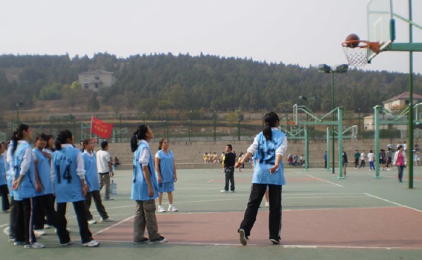女篮赛场上努力拼搏,展示了安全女生奋发进取的风采!