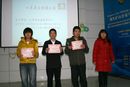 与矿业学院大学生心理健康教育辅导站合作承办的“心灵美文朗诵比赛”决赛于矿业学院A604成功举办。本次比赛特邀矿业学院健康教育指导老师曹薇、海角社区