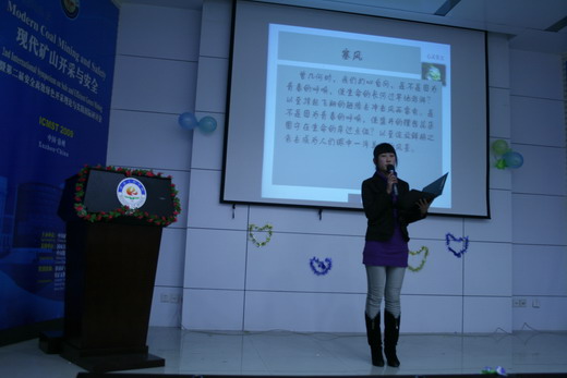 各位参赛选手朗诵完毕后,李秀老师对选手们的朗诵进行了高度评价,她认为各位选手表现都相当出色,将自己融入到角色中尽情释放,将配音场景与美妙音质结合来传递情感,李老师鼓励各位选手积极地在更大的舞台上吟唱更美的心灵之歌。随后安全09-4班的6位同学为大家献上美绝伦的手语操,伴着《爱》的美妙音乐,手语操与朗诵比赛的主题“心灵美文”完美的结合在一起。