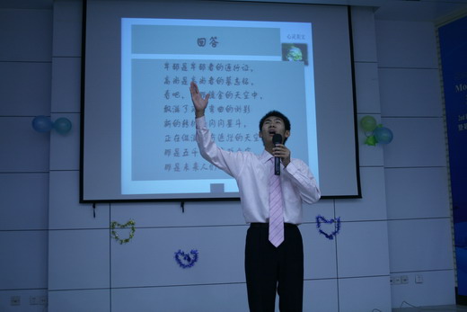 本次朗诵比赛共分4个主题,分别为礼赞青春、吟诵亲情、感恩生活和坚强面对。程艳青等同学的朗诵散发着青春的激情,洋溢着青春的气息,声情并茂,抑扬顿挫;张金毛、张斐然几位同学以浓浓的亲情为主题,垂眸抬手之间,对父母敬与爱的情感的淋漓尽致;吕雅洁、薛颖飞等几位同学的朗诵言语与肢体动作协调配合尽显她们对生活的虔诚的感恩之心;丁晓龙同学则像一只在闪电间、在怒吼的大海上高傲飞翔的海燕,坚定的神情和豪迈的激情,显现了他的男儿本色。