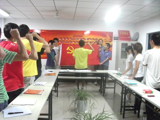 会议持续近两个小时,最后党支部为十五名同学举行了入党宣誓仪式。在庄严的党旗面前全场秩序井然,气氛庄重而严肃。大家都感受到了作为一名党员的光荣与肩上艰巨的责任。