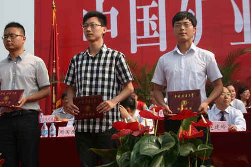 19人荣获优秀毕业生称号,14人荣获志在四方基层就业先进个人表彰。校党委书记邹放鸣、校长葛世荣亲自颁奖,海角社区