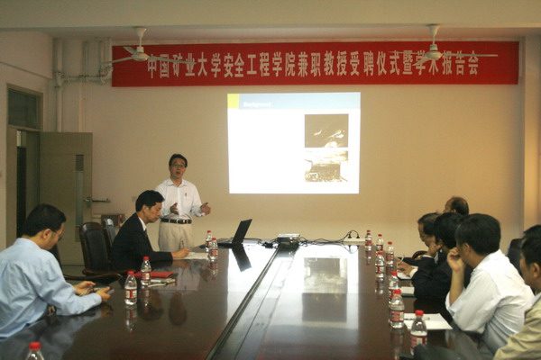 聘任仪式结束后,薛生博士为作了题为“Coal Mine Outburst—Mechanism, Thresholds and Prediction Techniques- the Australian Perspective.”的学术讲座,就澳大利亚在瓦斯突出机理、临界值和预测技术方面的研究认识做了介绍。