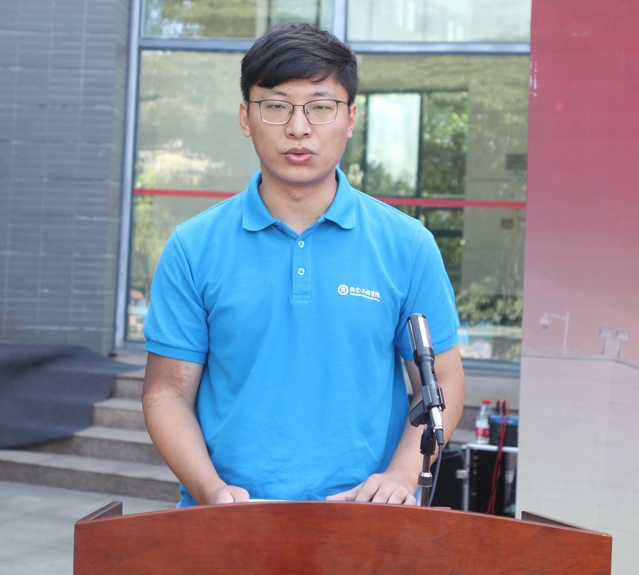 青年教师冯乐乐作为教师代表发言。他结合自身学习发展、科研成长经历向同学们分享了自己在清华大学的成长经历,希望本科生认真学习专业知识,努力获得优良的成绩;研究生潜心科研,结合现场实践解决工程技术问题;将个人发展与集体、与社会、与国家的发展结合。