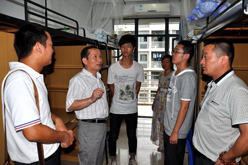 和14级新生及其家长亲切交谈,询问14级新生的入学适应情况,听取家长对学院工作的意见和建议。