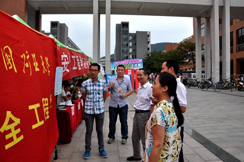 位于三食堂广场、二食堂车站的迎新服务点的工作人员有条不紊地迎接新生的到来。安全学院党委书记章毛平、副院长朱晓东等亲临迎新现场指导工作。
