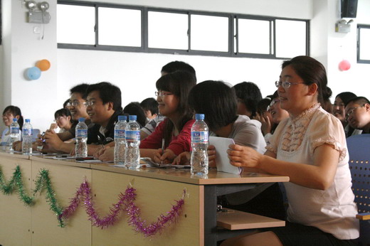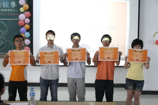 心理自助中心指导教师李秀老师、09级辅导员刘筱婕老师、资源学院辅导员王军鹏老师、计算机学院辅导员纪荣林老师及校大学生心理自助中心主任黄飞同学担任本次比赛的评委。比赛期间,校大学生健康教育中心指导教师李红娇老师亲临现场观看比赛,对进入决赛的五个班级的出色表演都给予了充分的肯定。