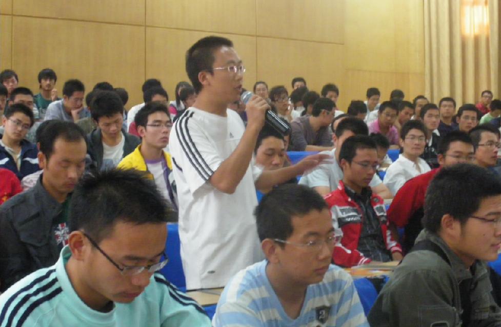 接着,陈董跟同学们分享了个人成长成功的经验。首先,他向同学们提出了几个问题,例如“有没有三个以上的死党”、“有没有被救或者被拜的经历”“有没有大声说过我爱你”、“毕业后是否愿意去矿山工作”等涉及工作学习生活各个方面的问题。在座的同学们积极互动,踊跃发言。听了同学们的发言,陈董连连称道,并结合自己多年经营企业摸爬滚打的经验向同学们讲述自己的心得体会。陈董语重心长地告诫大家“幸福是一种感受,与贫富、地位无关。只有活在自己的心中,而不是活在别人的看法中,才是真正的幸福”,“大家一定要有清晰的目标,清晰的目标加一群死党才会取得成功”。同时,陈董感谢同学们如此认真的聆听此次讲座,他说“作为一个从农村走出的孩子,我愿意把自己感悟的点点滴滴与跟多人分享,让更多人吸收、成才、茁壮,这才是我的信仰”。