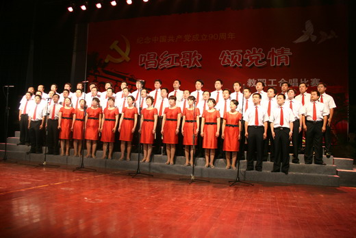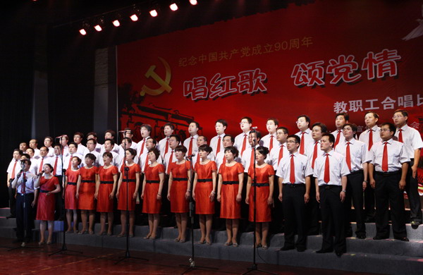 教职工用热情、激情与歌声抒发着对建党90周年庆典的期盼与祝福。比赛现场,海角社区