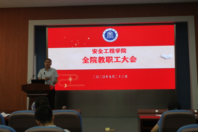 王思华书记传达了学校有关文件要求,并结合学院今后主要工作的谋划落实做了强调。他指出,学院要进一步坚持特色发展、创新发展的理念,要聚焦国家战略需求,继续在传统方向发挥其引领作用,同时也要已有新领域有所作为;要进一步加强学院的文化建设,发扬老一辈安全人的能战斗、能吃苦、能奉献、善于创新的优良传统和家国情怀,引导全体师生能够拥有大格局、把握大方向,进入大境界,以世界眼光、国家情怀、学院大局来思考工作和学习;要坚持问题和目标导向,围绕学院今后的发展目标,结合学院十四五的编制,完善各项工作制度,提高管理服务效能,激发学院的办学活力,打造一个公开、透明、公平的内部治理体系。