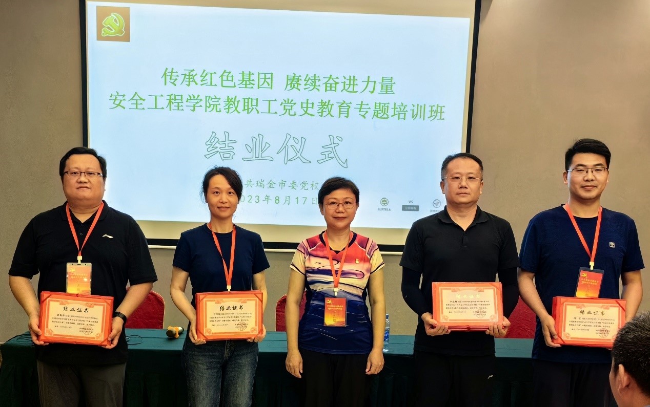 8月17日晚,结业仪式上,副院长郭梅香为学员代表颁发了结业证书,学员代表踊跃发言,认真总结学习心得和体会。院党委书记曲颂总结了此次专题培训的成效,并希望学员把弘扬苏区精神与推动学院事业发展结合起来,为创建“安全特色、世界一流”的高水平研究型学院,推动学院事业发展再上新台阶、再创新辉煌,为加快推进能源资源特色世界一流大学建设,实现中华民族伟大复兴的中国梦做出安全人新的更大贡献!