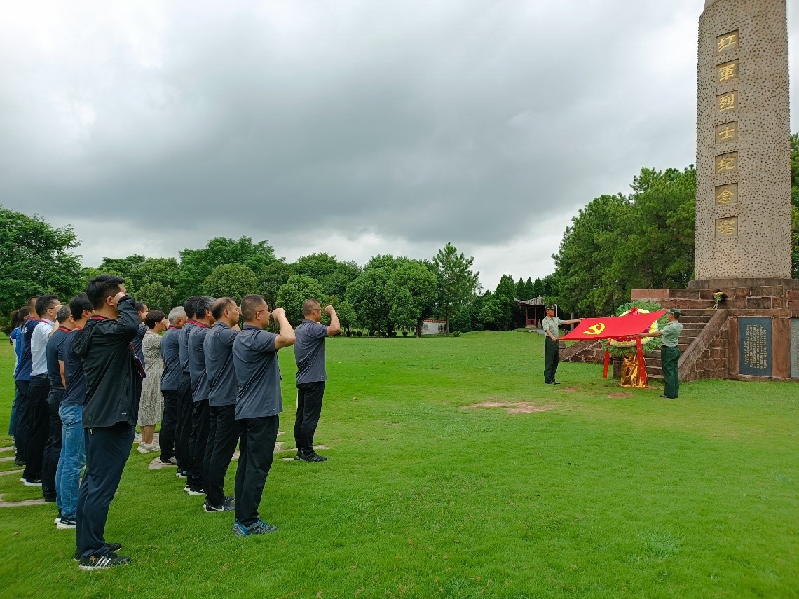 向红军烈士纪念塔敬献花篮并重温入党誓词