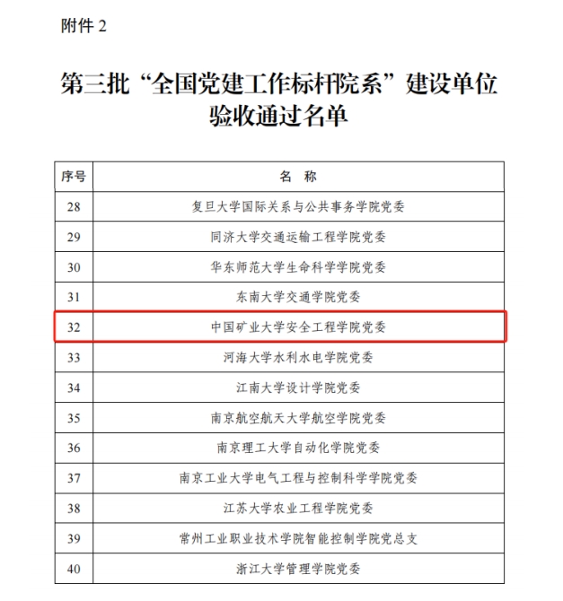 党委自2022年3月入选教育部第三批“全国党建工作标杆院系”培育建设单位以来,坚持以习近平新时代中国特色社会主义思想为指导,深入学习贯彻党的二十大精神和全国教育工作会议精神,认真落实《第三批新时代高校党建“双创”工作重点任务指南》和《普通高等学校教师党建和思想政治工作质量标准(试行)》,围绕立德树人根本任务,扎实开展学习贯彻习近平新时代中国特色社会主义思想主题教育,全面推进学校“十四五”规划任务目标和重点工作,以党的政治建设为统领,以学科建设为龙头,学院在人才培养、科学研究、社会服务等各方面迈上新台阶,安全科学与工程学科再次入选“双一流”学科,在第五轮学科评估中继续保持领先,连续7年“软科中国最好学科排名”第一,实现了党建工作与事业发展深度融合,以高质量党建引领学院事业高质量发展。