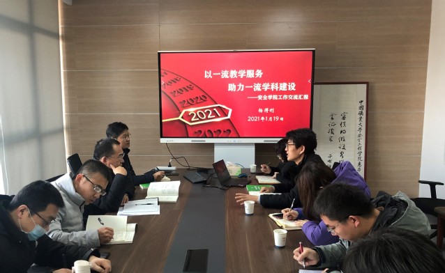 杨得利副部长以“以一流教学服务 助力一流学科建设”为题,从构建挑战性研究型实践教学体系、健全双创教育体系、完善教师教学能力发展支持体系和加强教材建设与使用管理四个方面做了专题汇报交流。他详尽分析了学院相关数据情况,剖析了优势特色与存在问题,对之后的学院教学工作提出了建议。他希望能与安全学院保持密切联系,提供精准的教学服务,助力一流学科的建设,共同培养一流拔尖创新人才。他祝愿学院本科教学工作再创辉煌,迎接崭新的2021年。