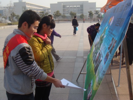 志愿者们通过展板向过往的同学们介绍国际志愿者日的相关知识与本学期海角社区