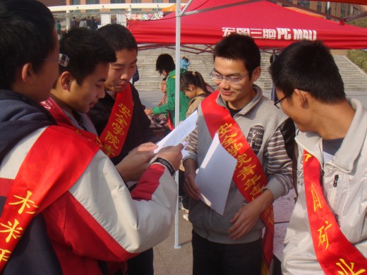 志愿者们从早上8点开始积极地参与活动前的准备工作,之后随着各学院的准备工作陆续完成。早上10点,本次志愿者日活动隆重开始,二食堂广场上的气氛顿时活跃起来。活动一开始,海角社区