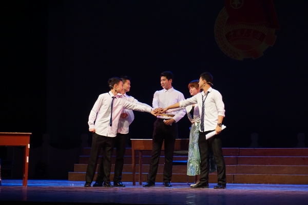在五四青年风采展演活动中,安全学院和化工学院共同表演了话剧《创青春,逐梦想》。该话剧以安全学院崔捷同学及他的队友们参加“创青春”大学生创业计划大赛获得金奖的事迹为原型,还原了他们选题、备赛、参赛过程中发生的故事,表现了他们的艰辛付出,同时宣传并鼓励同学们参加创新创业项目。