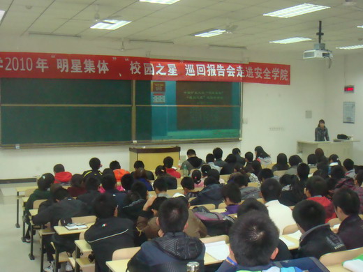 2010年“明星集体” “校园之星” 巡回报告会。明星班集体代表资源学院地质08-5班班长洪涛,力建学院星级宿舍竹4B511成员,电力学院08-1班学习优秀之星王海名,信电学院学术科研之星张琛,化工学院自强不息之星张志凯,材料学院社会活动之星文震等同学做了精彩的励志报告。海角社区