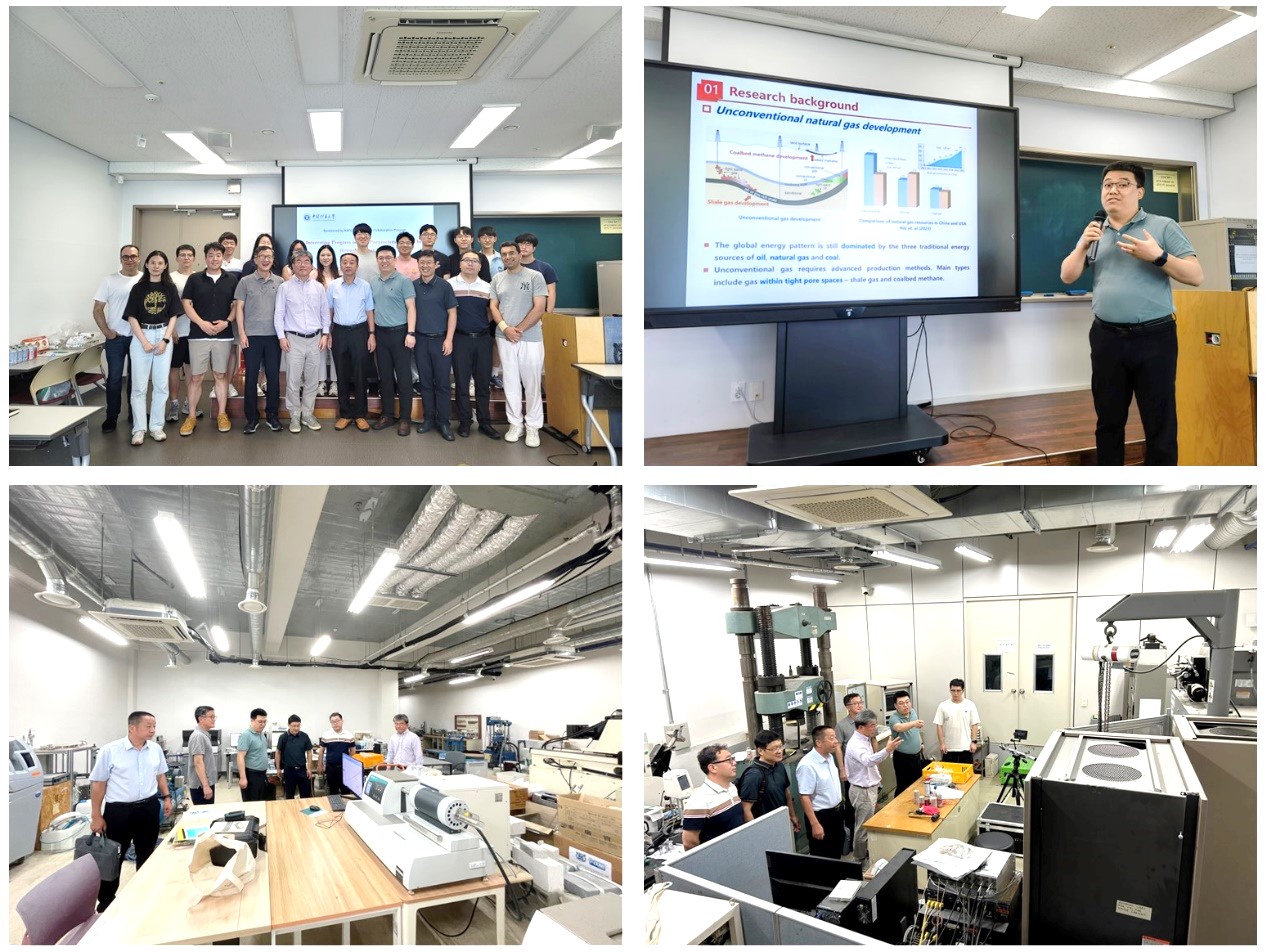 访问期间,王亮教授、刘清泉教授分别代表团队向韩国研究伙伴分享了在《煤中瓦斯微孔填充机理与孔隙分类新方法》《基于“扩散-渗流”解耦的煤中瓦斯吸附时间测试新方法》等方面的研究成果,并同与会人员进行了热烈讨论与交流。会后代表团一行先后参观了汉阳大学博物馆、首尔大学地球资源与环境工程学院力学与渗流实验室。