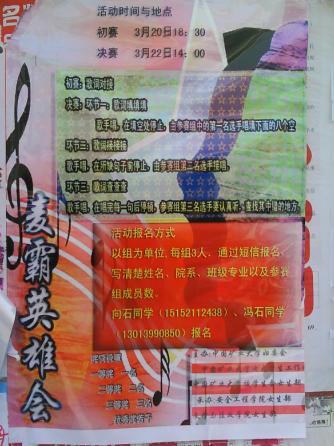 女生部和文法学院女生部承办的“麦霸英雄会”活动正在火热进行报名中。