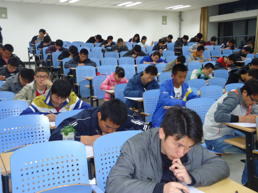 晚上七点整,同学们已安然入座。随着铃声响起,监考人员准时发卷。拿到试卷,同学们并不急着答卷,而是先大致浏览了试卷的主要内容。本次竞赛采取闭卷笔试形式,试卷分填空、选择、简答三个部分,以党、团的基本理论和最新理论成果以及党、团的重大活动、事件和重要人物等知识为竞赛内容。参赛同学以《中国共产党简史》、党章等作为参考资料,大家准备充分,沉着不慌,答题稳而有序。对于每一题,同学们经过慎重思考、认真思索后才会将答案填写于试卷上。一个半小时的竞赛过程中,全场静默无语,只见同学们埋首专注于手中的试卷,将自己对党、团的认识与了解以最完满的形式呈现于试卷上。最后,竞赛结束,同学们依次交卷,纷纷离场。