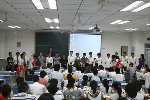 下午6:00时,答辩会现场已座无虚席。6:30,答辩大会准时开始。首先由09-10届学生会主席伏旭对本次答辩委员会的组成做了相关说明,并详细的介绍了答辩和投票选举的规则以及主席团成员的最终确定办法。