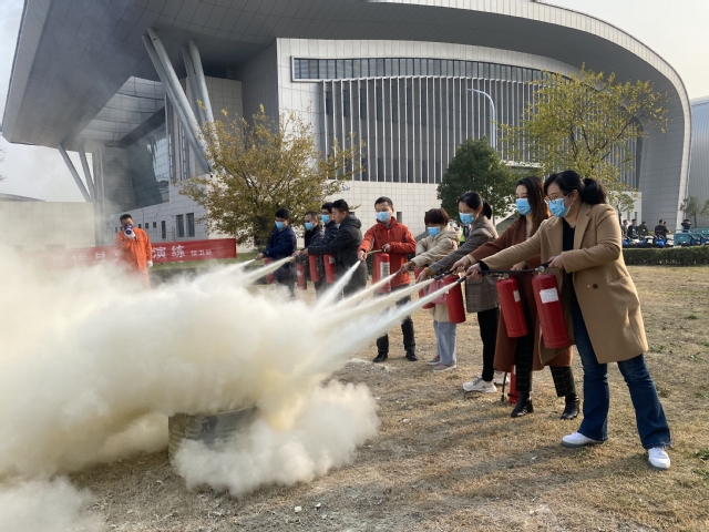 师生视演练如实战,一丝不苟、沉着应对,在现场操作灭火器,扑灭定点火源,积累了使用消防器材的实战经验。
