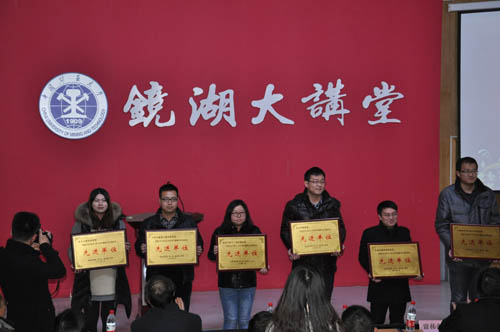荣获校级社会实践活动先进单位荣誉称号,安全学院“江苏省徐州市铜山区桥上社区”获得校级优秀实践基地荣誉称号,安全学院《农村沼气池利用情况调查报告》被评为校级优秀社会实践活动调查报告。安全学院硕博团队获得江苏省省级优秀团队荣誉称号;安全学院“爱心阳光之队——关爱留守儿童实践团”获得校级社会实践活动优秀团队荣誉称号。安全学院孙婷老师获得徐州市先进工作者,沈志伟获得徐州市先进个人荣誉称号,安全学院曹蒙钰、董齐齐等9人荣获校级社会实践活动先进个人荣誉称号。颁奖仪式结束后,各优秀代表团派出代表做实践成果报告。安全学院研究生代表朱金陀登台发言,发言中,他向大家讲述了他们团队走进安徽省金黄庄煤矿做实践活动的经历,分享了实践团获得成功的经验。